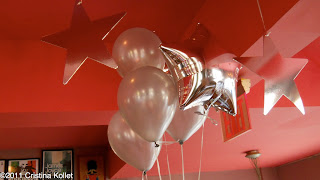 Guests wrote wishes on stars that were presented to Justin and Grace in beautiful star boxes painted by their mother. The room itself was decorated with stars hanging from the ceiling. We celebrated Grace and Justin being made of star the same stuff as stars (as we all are) and how brightly they shine.